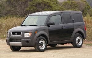 The 4-seat Element is optimized to carry large loads. The floor is made of textured urethane that is easy to clean; the fabric is tough and stain-resistant; the individual rear seats recline, fold up, and are removable. The rear clamshell tailgate arrangement is large and the vehicle is tall, allowing large loads.